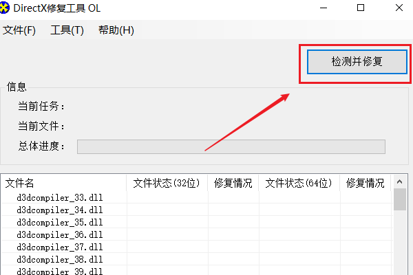 2、在DX修复页面点击检测并修复。
