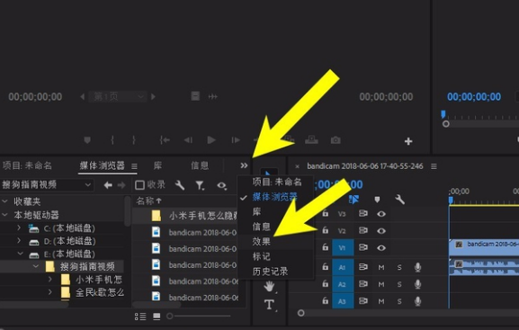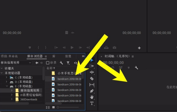 一、在左侧的媒体浏览器中找到了想要处理的视频,然后拖动到右侧的时间轴上面,如下图所示。