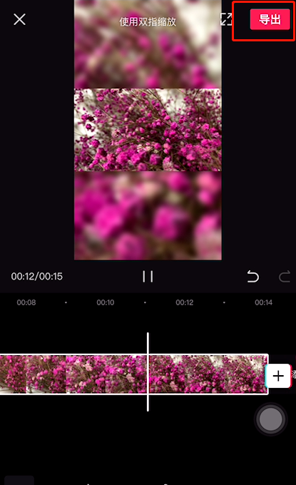 7、最后视频三屏上下模糊中间清晰的效果就已经完成了。最后点击右上角导出按钮即可。