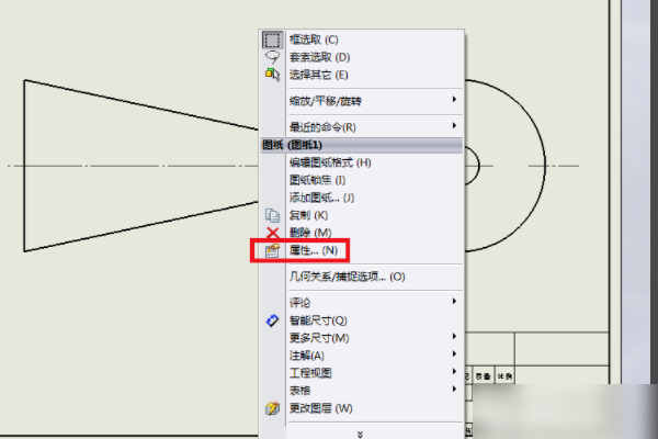 1、右键单击图形区域,然后从弹出菜单中选择鼠标单击“属性”的功能选项。