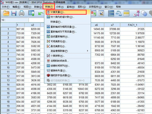 1、进入spss表格后点击转换,再点击计算变量。