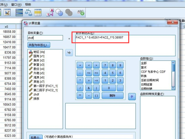 2、点击计算变量后就可以建立计算公式,计算公式通常权重是因子旋转后的方差贡献率。