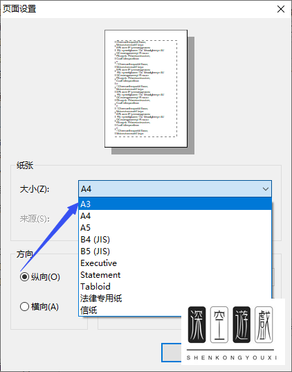4. 在纸张型号里选择A3;