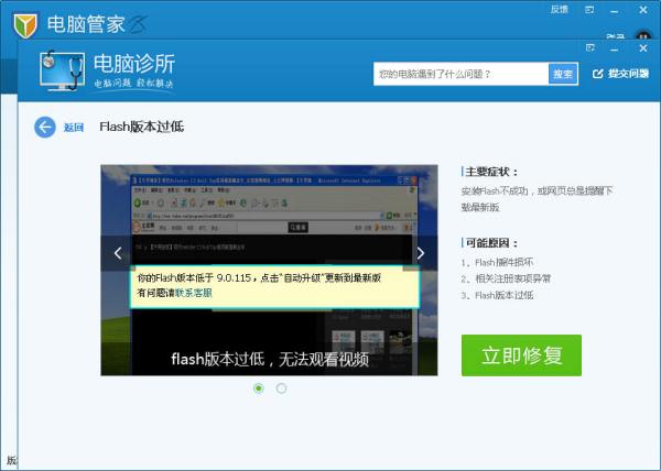 打开电脑管家电脑诊所,选择上网异常,选择flash版本过低的解决方案,一键修复即可,希望可以帮到您,望采纳