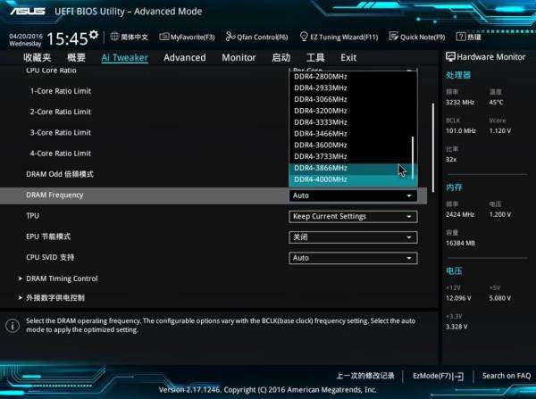 4、找到DRAM Frequency即可修改内存频率