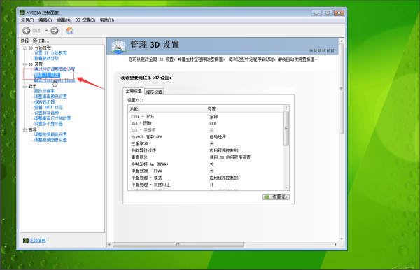 2. 在打开的页面中的左侧找到“管理3D设置”选项,然后进行点击。