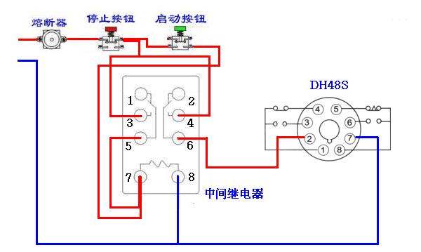 继电器的自锁和互锁一般指的是交(直)流接触器。下面给你介绍下如何实现的: 1、自锁 :是在接触器线圈得电后,利用自身的常开辅助触点保持回路的接通状态,一般对象是对自身回路的控制。如把常开辅助触点与启动按钮并联,这样,当启动按钮按下,接触器动作,辅助触点闭合,进行状态保持,此时再松开启动按钮,接触器也不会失电断开。 一般来说,在启动按钮和辅助触点并联之外,还要在串联一个按钮,起停止作用。点动开关中作启动用的选择常开触点,做停止用的选常闭触点。 2、互锁 :是指几个回路之间,利用某一回路的辅助触点,去控制对方的线圈回路,进行状态保持或功能限制。一般对象是对其他回路的控制。DH48S 和一个普通中间继电器,一个启动按钮,怎么接自锁?