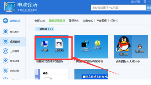 3、找到“图标显示异常”或“快捷方式变成未知图标”;