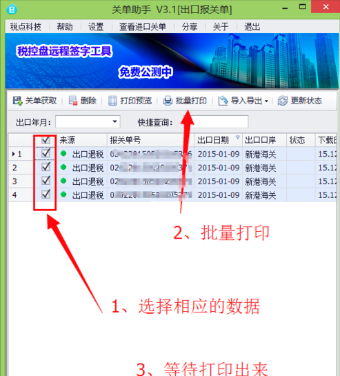 3、选择获取到的数据,点击批量打印,就打印出来了。