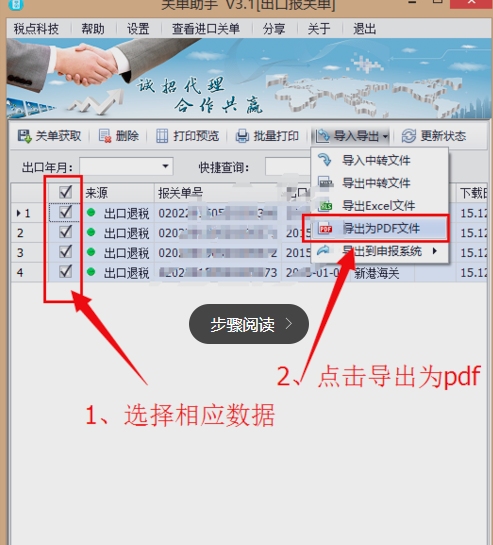 4、导出PDF。选择获取的数据,点击导出PDF,以下是导出的方法和导出的截图。