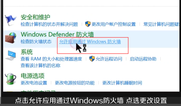 点击“允许应用通过Windows防火墙”,点选“更改设置”。