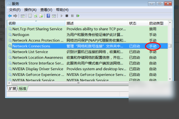 1、确认Network Connections 服务没有被禁用,按下Win+R,打开“运行”对话框,输入services.msc,打开服务管理功能,找到“网络连接”服务,确认启动类型未“禁用”。