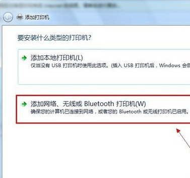 3、然后点击添加打印机,选择【添加网络、无线或Bluetooth打印机】