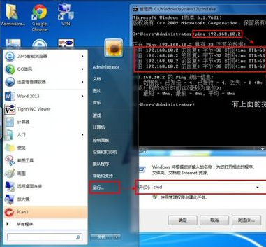 1、保证打印机是正常连通在网络上的。首先要测试一下。在命令提示符下输入【ping 网络打印机的IP地址】