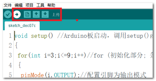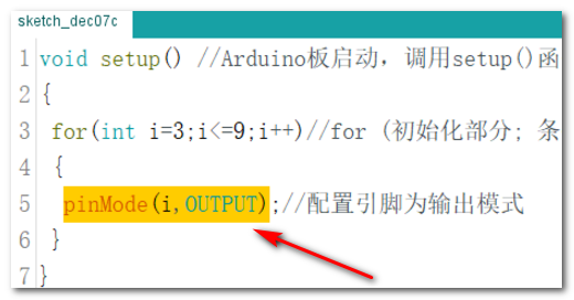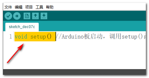 2、Arduino板启动,调用setup()函数,初始化变量,引脚模式。