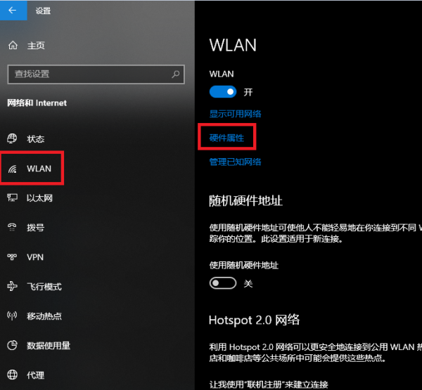 3、点选WLAN---硬件属性