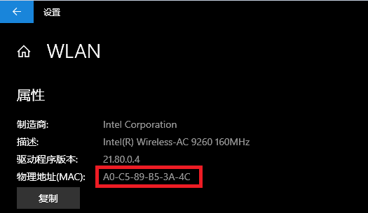4、进入查看硬件属性后,可以看到物理地址。
