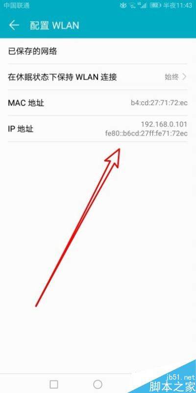 这时就会弹出配置Wlan的设置页面,在页面中可以看到当前手机的IP地址