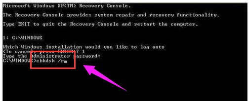 此时出现提示符C:\ ,这时候输入“ chkdsk -r ”就能自动检测修复了。