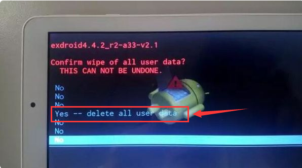 第二步、然后在弹出的英文对话框中选择第四个选项:Yes,delete all user data: