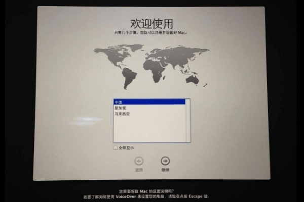 6、重启后进入系统设置界面,选择使用地区“中国”;