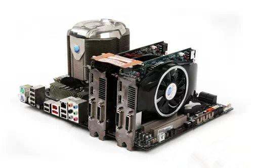 5. 在主板PE1槽上安装显卡,在PE3槽上安装附送的PCIE子卡(否则显卡只 能工作在PCIE x8模式;