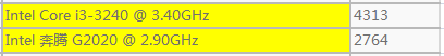 这类款CPU的跑分数据您也看到了,i3 3240 比 奔腾G2020 性能高出了 56%左右呢。