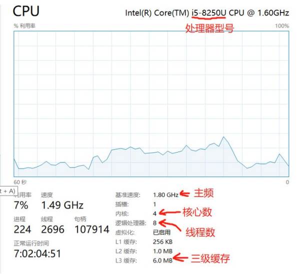 当然,如果想要科学的判断 CPU 处理器的性能强弱,那就需要从 CPU 处理器的核心、主频、缓存、制程等参数入手,为了可以更好的明白,以我的笔记本电脑 CPU 处理器为例,配合讲解。
