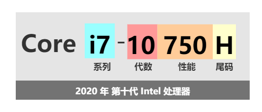 下面以这颗 i7-10750H 处理器为例,教大家读懂 CPU 处理器型号: