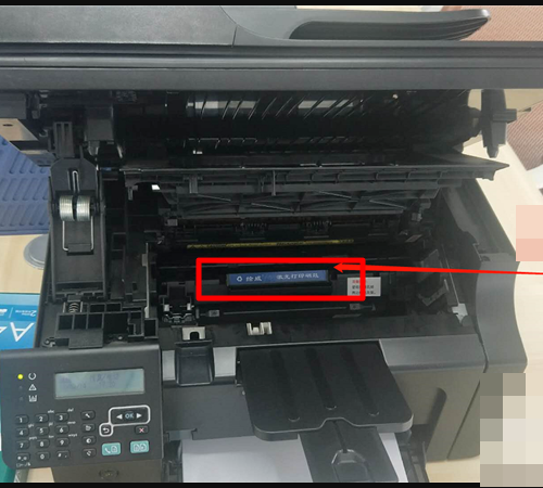 5、从新将墨盒插入打印机,注意要插入到位,防止卡壳。