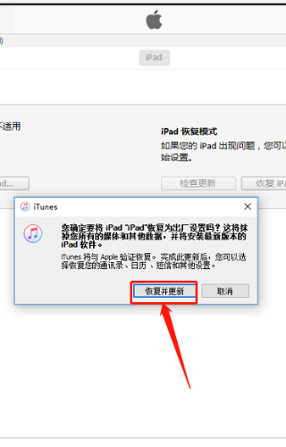 5、这时候iTunes出现检测到恢复状态的ipad,点击恢复按钮,进入恢复模式。