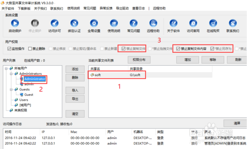 虽然以上方法可以实现共享文件被复制和另存为的操作,但仍然有一定的局限性,且实现起来比较繁琐。对此我们可以借助专门用于对共享文件进行管理的工具来实现。推荐大家使用“大势至共享文件审计系统”来实现对共享文件夹的访问权限管理操作。