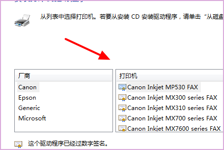 6、然后选择打印机的厂商和打印机型号,点击下一步。如图所示