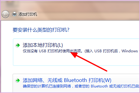 4、然后在弹出来的窗口中选择“添加本地打印机”,点击下一步。如图所示