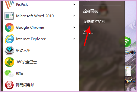 1、首先打开开始菜单栏,选择打开“设备和打印机”。如图所示