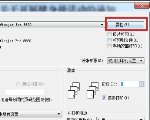 4、如果还想设置更多的打印方式,比如横向打印还是纵向打印,双面打印还是单面打印等就点击右侧上方的“属性”。