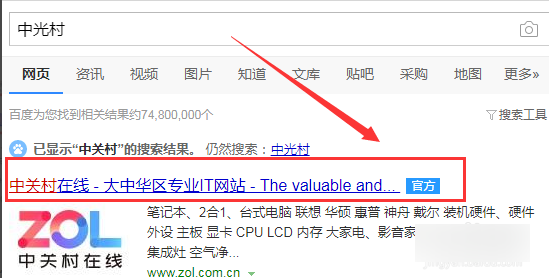 1、首先,在电脑端打开浏览器输入“中关村在线”点击进入官网。