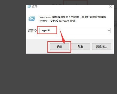 4、在文本框里输入“regedit”,然后点击“确定”。