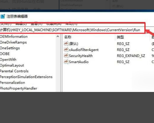 6、然后在左侧列表中选择:HKEY_LOCAL_MACHINE--SOFTWARE--microsoft--Windows--CurrentVersion--Run,找到Run后在右侧的列表中找到【runtime】错误信息,点击删除即可。