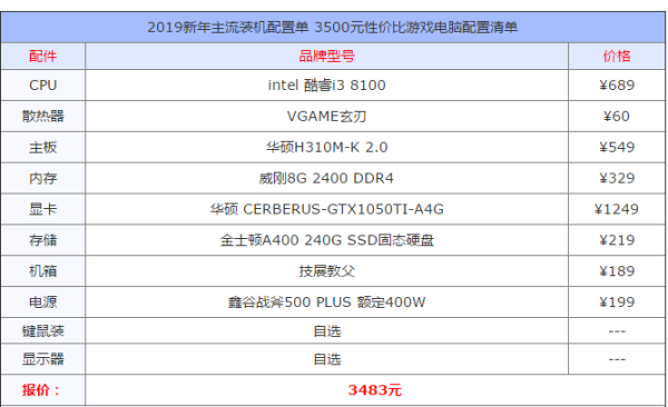 3500元性价比游戏电脑配置清单:今天电脑配置网给大家带来一套性价比很不错的游戏装机配置方案,主机的价位在3500元,很符合主流游戏用户的价格区间,高特效LOL,cf,中特效吃鸡、大型单机都可以应对。