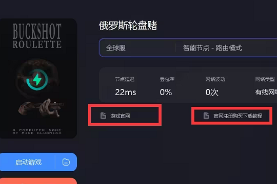 1、先打开暴喵加速器,搜索子弹轮盘赌并加速,加速后点击游戏官网进入。