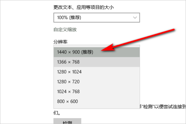 4、将分辨率选择为系统推荐的分辨率,如下图所示: