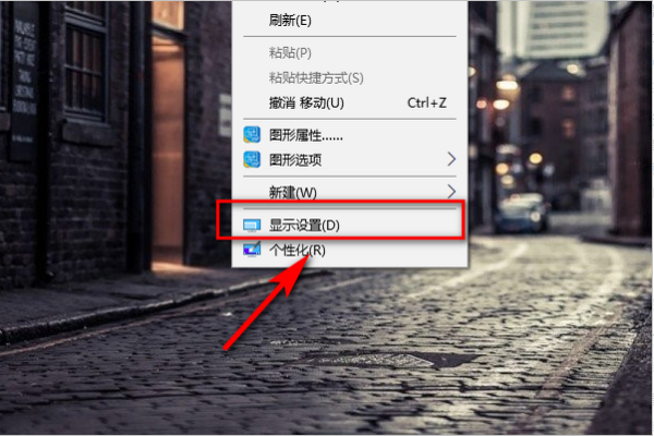2、在桌面空白处点击鼠标右键,在菜单中选择“显示设置”;