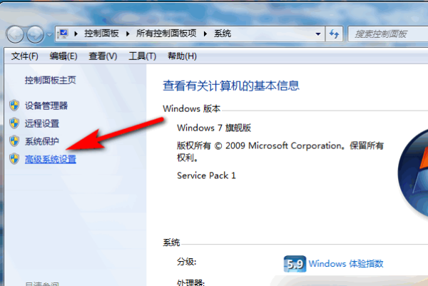 2、在弹出的【系统】面板中,点击左侧的【高级系统设置】。