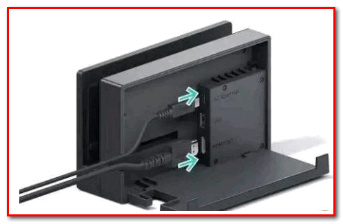 2、把充电器连接到上方插孔,将HDMI连接线接入下发插孔中。随后关闭NintendoSwitchDock盖子如下图所示。
