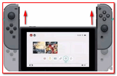 4、当手柄处于安装到主机的状态下选择TV模式,随后将左右两边手柄取下。如下图所示。