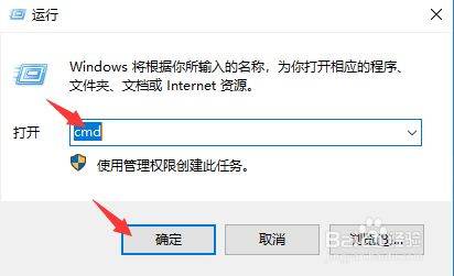 关闭前面打开的窗口,运行Windows+R打开运行窗口,在运行窗口中输入cmd命令,点击确认按钮打开命令行窗口