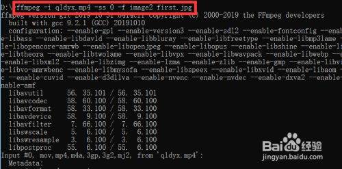 例如:ffmpeg -i qldyx.mp4 -ss 10 -f image2 first.jpg