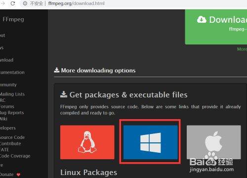 打开FFmpeg软件的官方网站http://ffmpeg.org/,点击"Download"下载按钮就如下载详情页