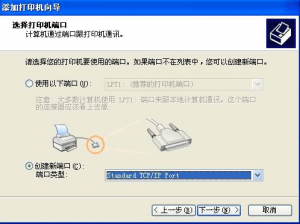 5.这步必须得选择下面这项也就是创建新端口,在它旁边向下的箭头打开选择第三项standard TCP/IP port然后一直下一步直到出现添加标准TCP/IP打印机端口向导,图: